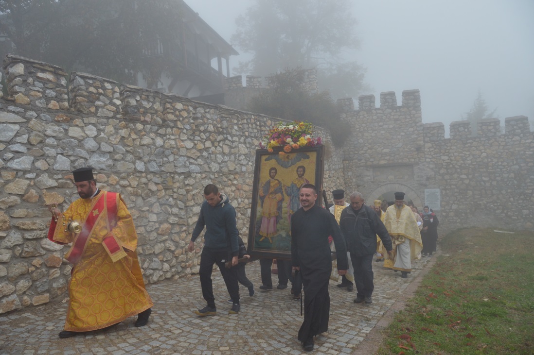 Снимки архив - 01.11.2019 г. - Св. безсребърници и чудотворци Козма и Дамян Асийски. Архиерейска св. Литургия в манастир "Св. св. Козма и Дамян" край град Куклен, Лития до аязмото и водосвет.